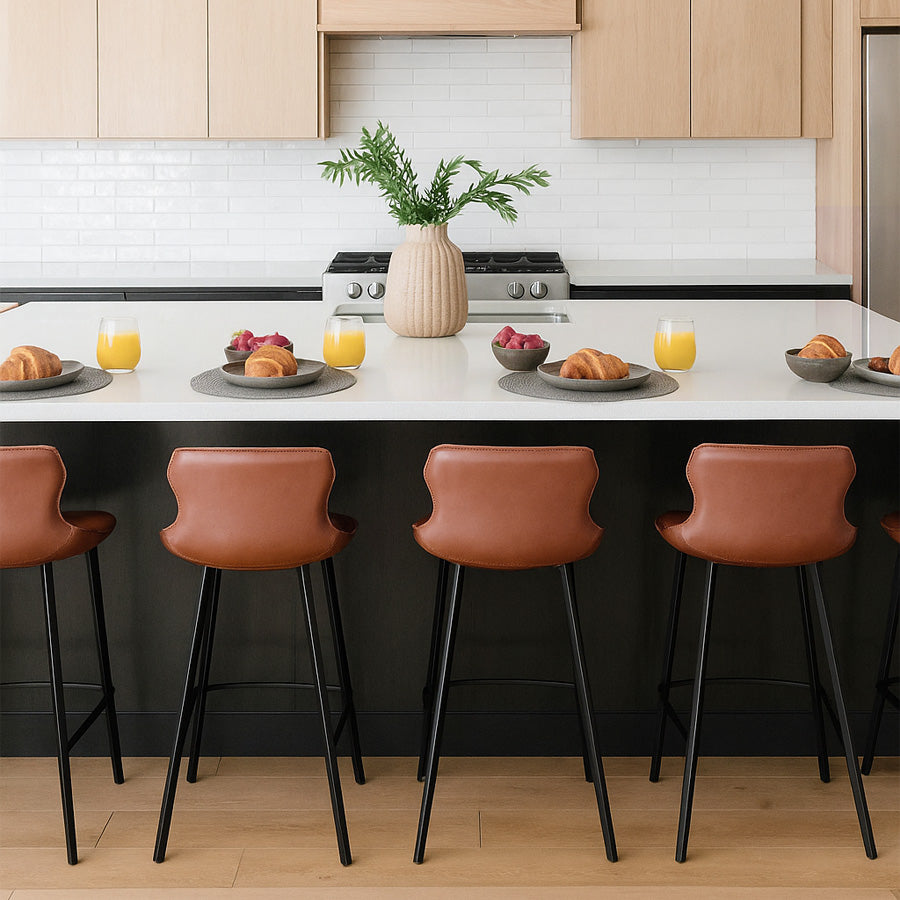 Diseño moderno con líneas limpias, este banco en color terracota aporta calidez y sofisticación a cualquier espacio. Ideal para barras con altura de 90 cm.