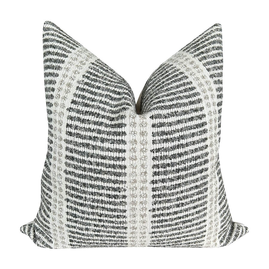 Este cojín es una pieza versátil y sofisticada que aportará una textura rica y un patrón geométrico atemporal a cualquier espacio de tu hogar. El diseño de rayas en tonos blanco y negro. es fácil de integrar en decoraciones minimalistas, modernas o rústicas.
