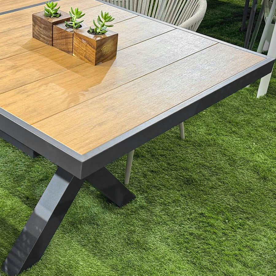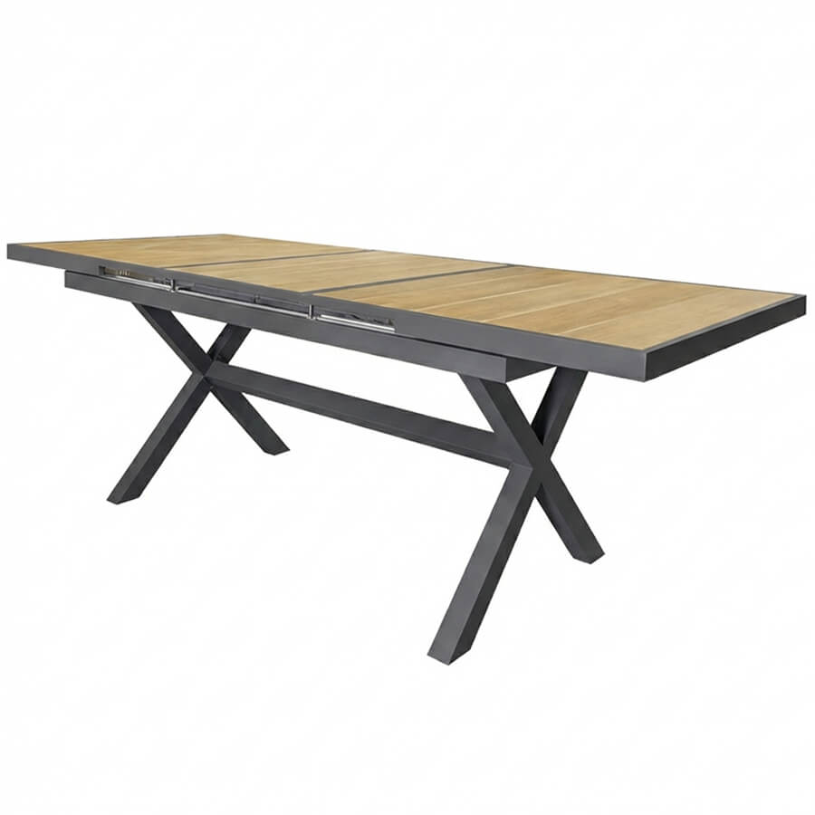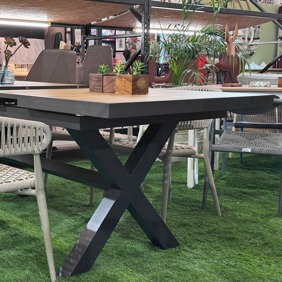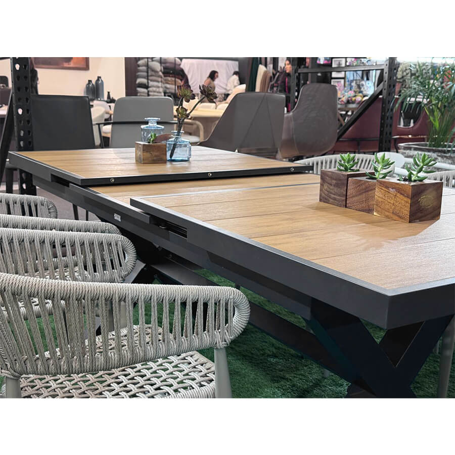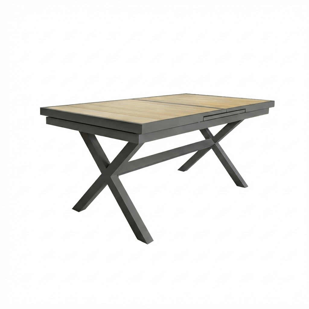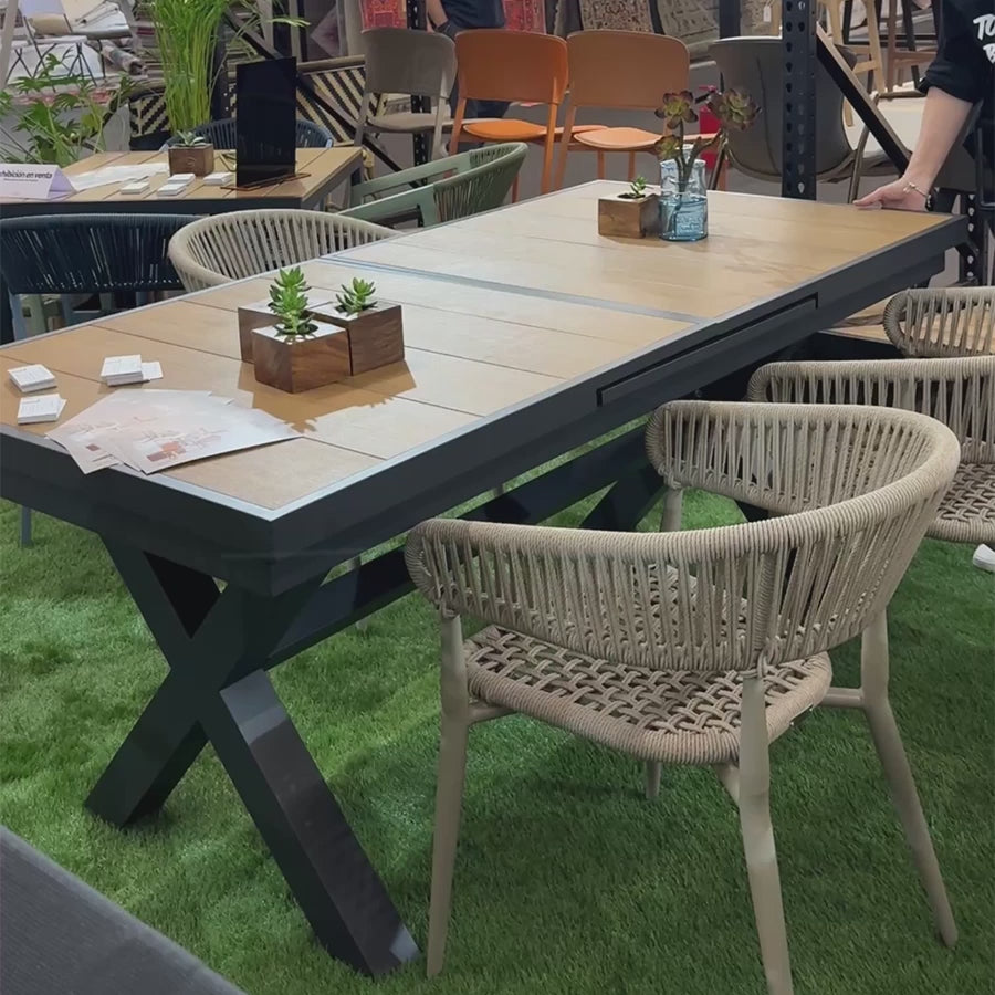 Mesa expandible para exterior, ideal para jardines o terrazas. Resistente al agua y al sol, con capacidad de 6 a 8 o 10 personas gracias a su sistema de expansión.