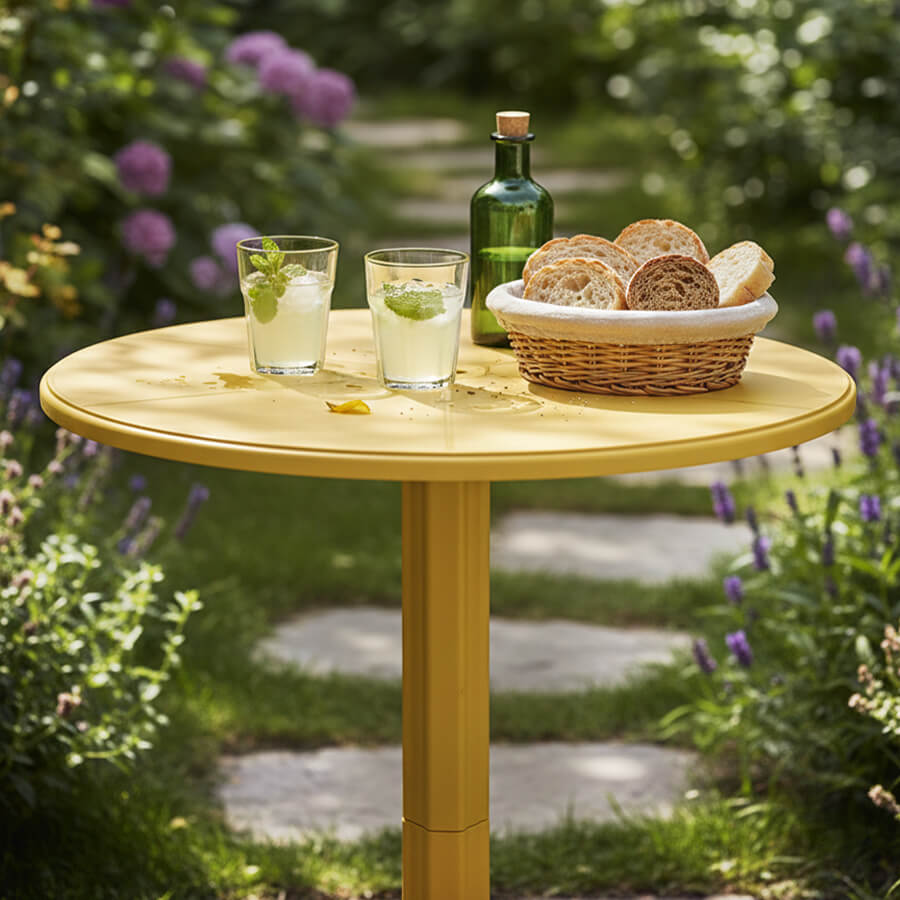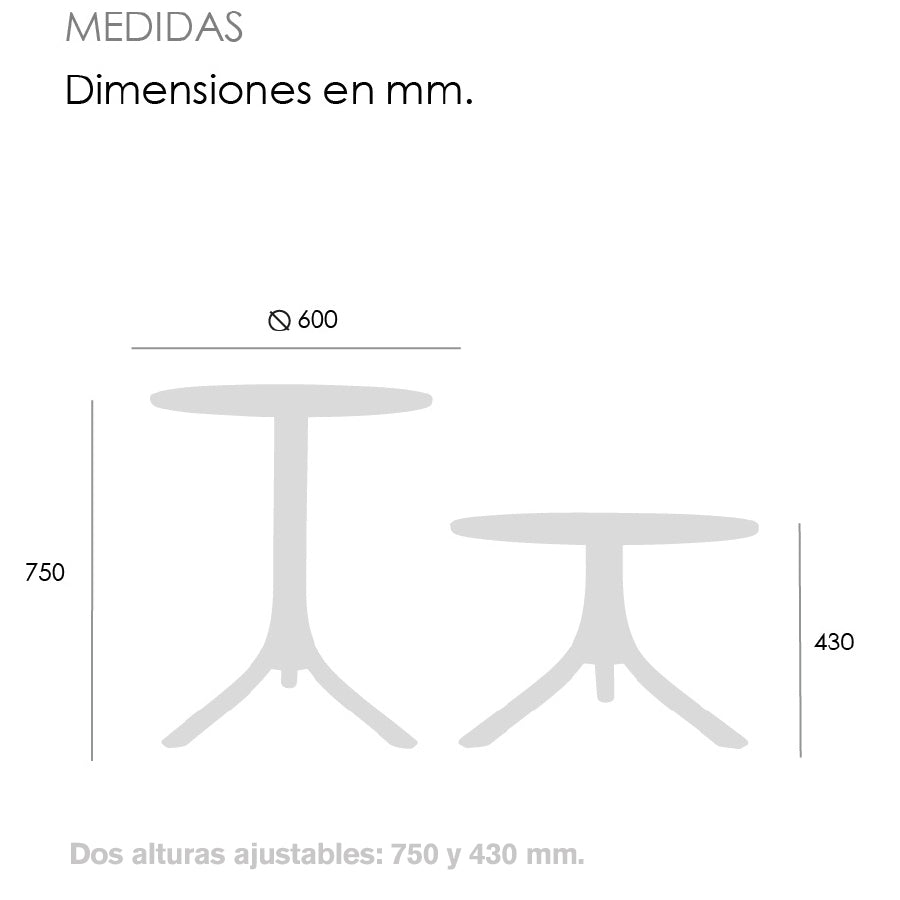 Cubierta y patas: Dos alturas ajustables: 75 y 43 cm.