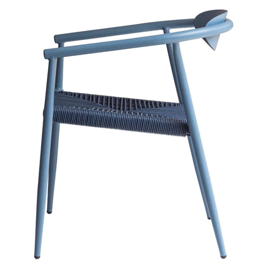 Silla Mykonos fabricada de aluminio y acabado en pintura al horno y protección UV, ideal para balcones, terrazas o restaurantes, ya que es apata para uso a la intemperie.