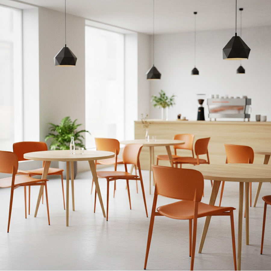 En un vibrante color naranja. Esta silla, con diseño contemporáneo, es la elección perfecta para quienes buscan añadir un toque fresco a cualquier ambiente.